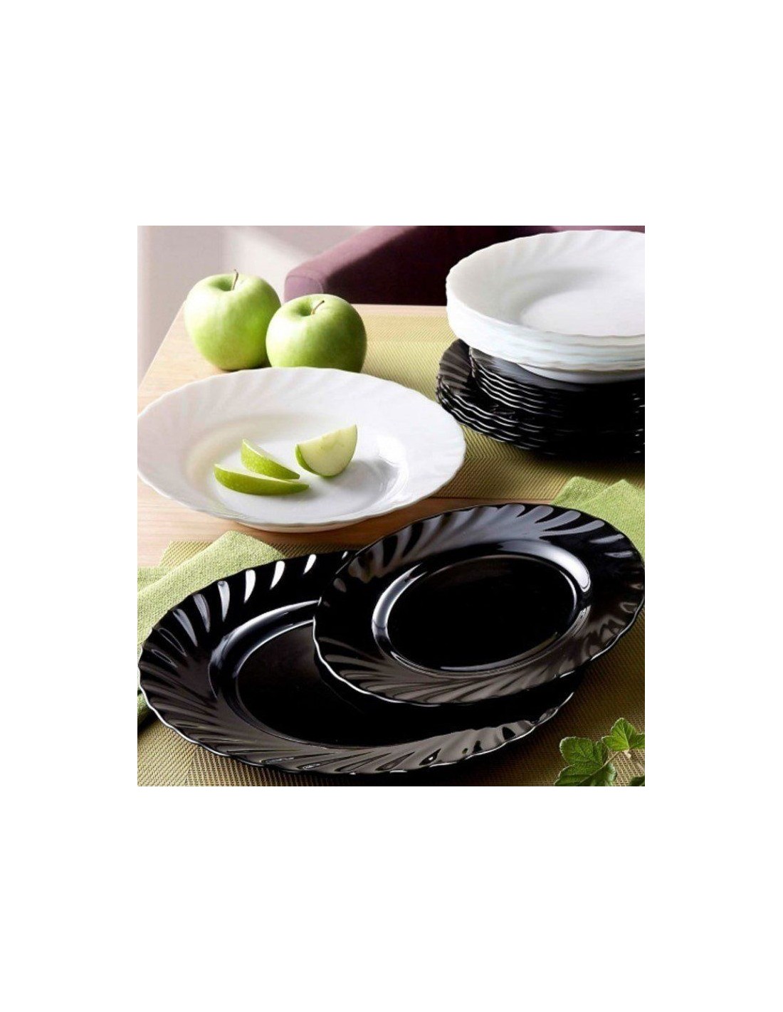 Set serviciu de masa negru-alb, pentru 6 persoane, Luminarc Trianon, 19 piese, 18 farfurii si bol salata