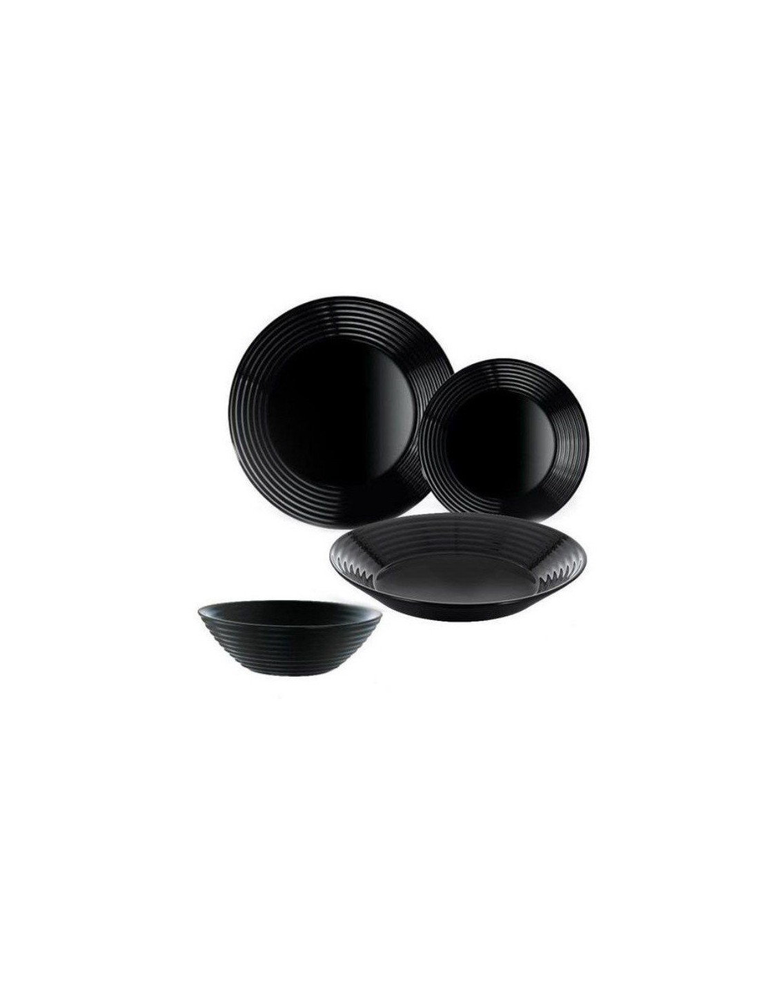Set serviciu de masa negru, pentru 6 persoane, Luminarc Harena, 19 piese, 18 farfurii si bol salata